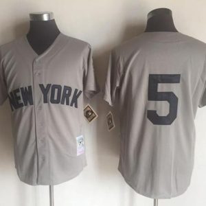 Authentic MLB Mitchell And Ness Yankees #5 Joe DiMaggio Grey Throwback Stitched MLB Jersey