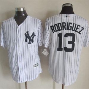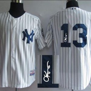Authentic MLB Yankees #13 Alex Rodriguez White Strip Team Logo Fashion Stitched MLB Jersey
