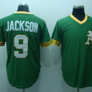Authentic MLB Mitchell and Ness Athletics #9 Reggie Jackson Stitched Green Throwback MLB Jersey