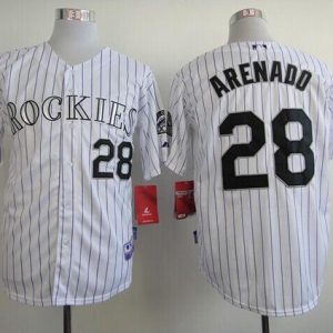 Authentic MLB Rockies #28 Nolan Arenado White Strip New Cool Base Stitched MLB Jersey