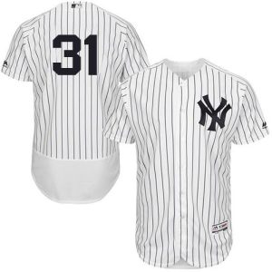 Authentic MLB Yankees #31 Aaron Hicks White Strip Flexbase Authentic Collection Stitched MLB Jersey