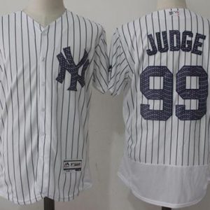Authentic MLB Yankees #99 Aaron Judge White Strip New Cool Base 2018 Memorial Day Stitched MLB Jersey