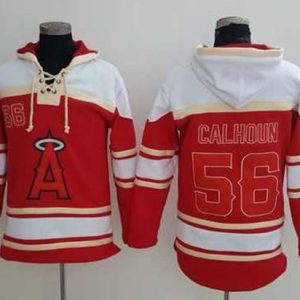 Authentic MLB Angels of Anaheim #56 Kole Calhoun Red Sawyer Hooded Sweatshirt MLB Hoodie