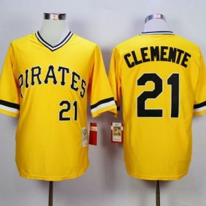 Authentic MLB Mitchell and Ness 1971 Pirates #21 Roberto Clemente Yellow Throwback Stitched MLB Jersey