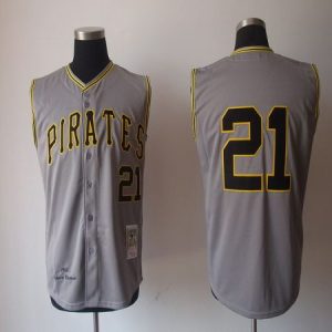 Authentic MLB Mitchell And Ness 1962 Pirates #21 Roberto Clemente Grey Stitched MLB Jersey