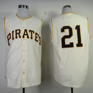 Authentic MLB Mitchell And Ness 1960 Pirates #21 Roberto Clemente Cream Throwback Stitched MLB Jersey