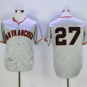 Authentic MLB Mitchell And Ness 1962 Giants #27 Juan Marichal Grey Stitched Throwback MLB Jersey