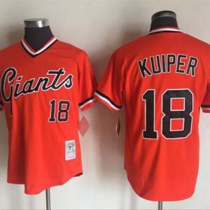 Authentic MLB Mitchell And Ness Giants #18 Duane Kuiper Orange Throwback Stitched MLB Jersey