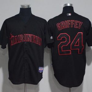 Authentic MLB Mariners #24 Ken Griffey Black Strip Stitched MLB Jersey