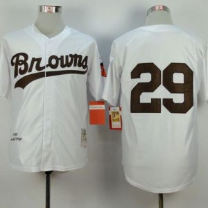 • Authentic MLB Mitchell and Ness 1953 Browns #29 Satchel Paige White Throwback Stitched MLB Jersey