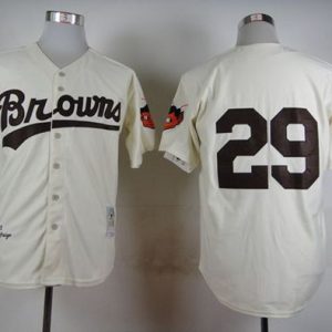 • Authentic MLB Mitchell And Ness 1953 Browns #29 Satchel Paige Cream Throwback Stitched MLB Jersey