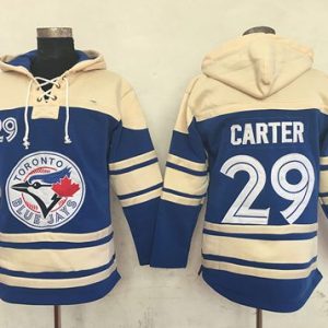 Authentic MLB Blue Jays #29 Joe Carter Blue Sawyer Hooded Sweatshirt MLB Hoodie