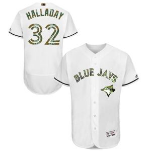 Authentic MLB Blue Jays #32 Roy Halladay White Flexbase Authentic Collection Memorial Day Stitched MLB Jersey