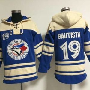Authentic MLB Blue Jays #19 Jose Bautista Blue Sawyer Hooded Sweatshirt MLB Hoodie