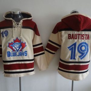 Authentic MLB Blue Jays #19 Jose Bautista Cream Sawyer Hooded Sweatshirt MLB Hoodie