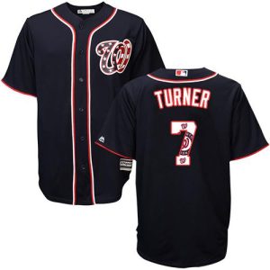 Authentic MLB Nationals #7 Trea Turner Navy Blue Team Logo Fashion Stitched MLB Jersey