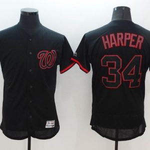 Authentic MLB Nationals #34 Bryce Harper Black Fashion Flexbase Authentic Collection Stitched MLB Jersey