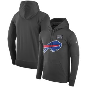 NFL Men’s Buffalo Bills Charcoal Sideline Property Of Wordmark Logo Performance Pullover Hoodie