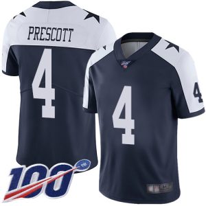 NFL Youth Dallas Cowboys #4 Dak Prescott Navy Blue Thanksgiving Stitched 100th Season Vapor Throwback Limited Jersey