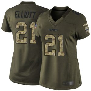 NFL Women’s Dallas Cowboys #21 Ezekiel Elliott Olive Camo Stitched Limited 2017 Salute to Service Jersey