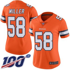 NFL Women’s Denver Broncos #58 Von Miller Orange Team Color Stitched 100th Season Vapor Limited Jersey