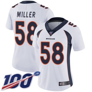 NFL Women’s Denver Broncos #58 Von Miller White Stitched 100th Season Vapor Limited Jersey