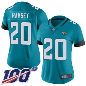 NFL Women’s Jacksonville Jaguars #20 Jalen Ramsey Teal Green Alternate Stitched 100th Season Vapor Limited Jersey