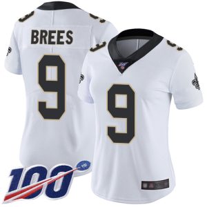 NFL Women’s New Orleans Saints #9 Drew Brees White Stitched 100th Season Vapor Limited Jersey