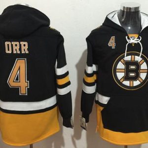 NHL Hockey Bruins #4 Bobby Orr Black Name & Number Pullover NHL Hoodie