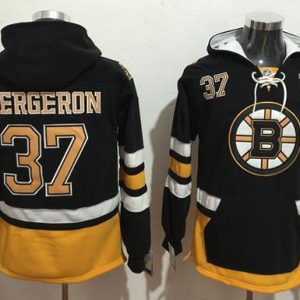 NHL Hockey Bruins #37 Patrice Bergeron Black Name & Number Pullover NHL Hoodie