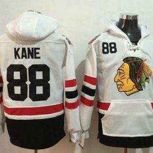 NHL Hockey Blackhawks #88 Patrick Kane White Name & Number Pullover NHL Hoodie
