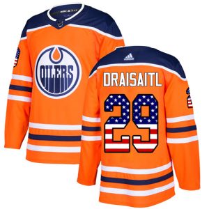 NHL Hockey Adidas Oilers #29 Leon Draisaitl Orange Home Authentic USA Flag Stitched NHL Jersey