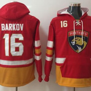NHL Hockey Panthers #16 Aleksander Barkov Red Name & Number Pullover NHL Hoodie