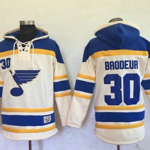 NHL Hockey Blues #30 Martin Brodeur Cream Sawyer Hooded Sweatshirt Stitched NHL Jersey