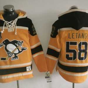 NHL Hockey Penguins #58 Kris Letang Gold Sawyer Hooded Sweatshirt Stitched NHL Jersey