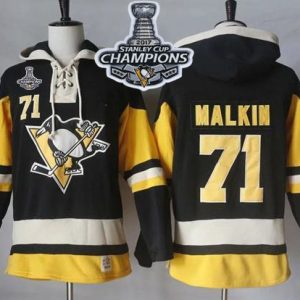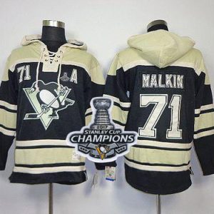 NHL Hockey Penguins #71 Evgeni Malkin Black Sawyer Hooded Sweatshirt Stanley Cup Finals Champions Stitched NHL Jersey