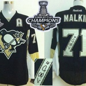 NHL Hockey Penguins #71 Evgeni Malkin Black Autographed Stanley Cup Finals Champions Stitched NHL Jersey