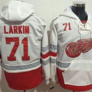 NHL Hockey Red Wings #71 Dylan Larkin White Name & Number Pullover NHL Hoodie