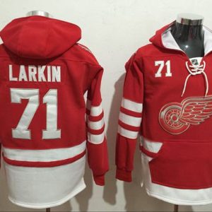 NHL Hockey Red Wings #71 Dylan Larkin Red Sawyer Hooded Sweatshirt Stitched NHL Jersey