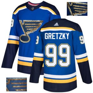 NHL Hockey Adidas Blues #99 Wayne Gretzky Blue Home Authentic Fashion Gold Stitched NHL Jersey