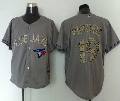 Authentic MLB Blue Jays #19 Jose Bautista Grey USMC Cool Base Stitched MLB Jersey