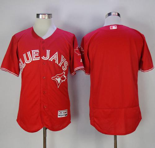 Authentic MLB Blue Jays Blank Red Flexbase Authentic Collection Canada Day Stitched MLB Jersey