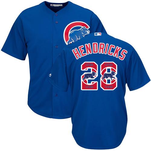 Authentic MLB Cubs #28 Kyle Hendricks Blue Team Logo Fashion Stitched MLB Jersey