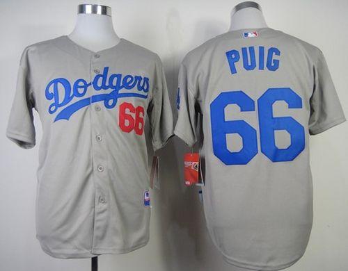 Authentic MLB Dodgers #66 Yasiel Puig Grey Cool Base Stitched MLB Jersey