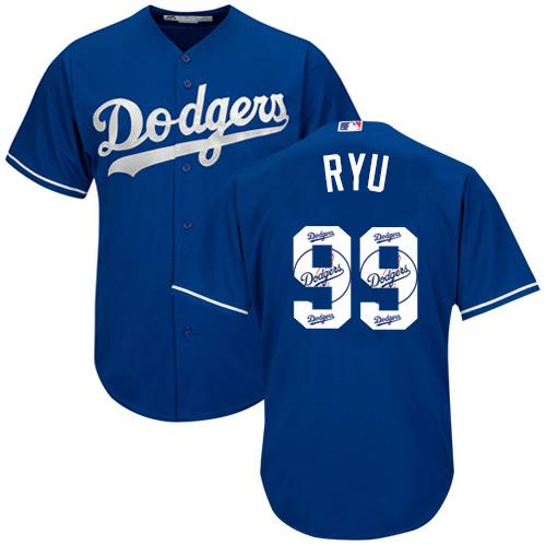 Authentic MLB Dodgers #99 Hyun-Jin Ryu Blue Team Logo Fashion Stitched MLB Jersey