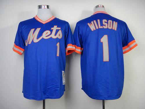 Authentic MLB Mitchell and Ness 1983 Mets #1 Mookie Wilson Blue Throwback Stitched MLB Jersey