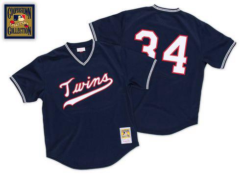 Authentic MLB Mitchell And Ness 1985 Twins #34 Kirby Puckett Navy Blue Throwback Stitched MLB Jersey