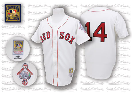 Authentic MLB Mitchell And Ness 1987 Red Sox #14 Jim Rice White Throwback Stitched MLB Jersey