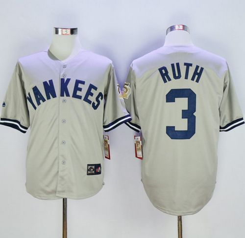 Authentic MLB Mitchell And Ness 75TH Yankees #3 Babe Ruth Grey Throwback Stitched MLB Jersey