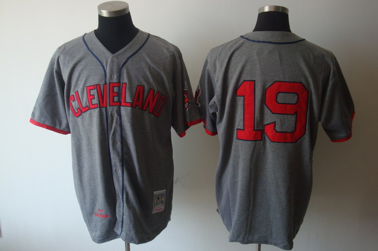 Authentic MLB Mitchell and Ness Indians #19 Bob Feller Grey Stitched Throwback MLB Jersey